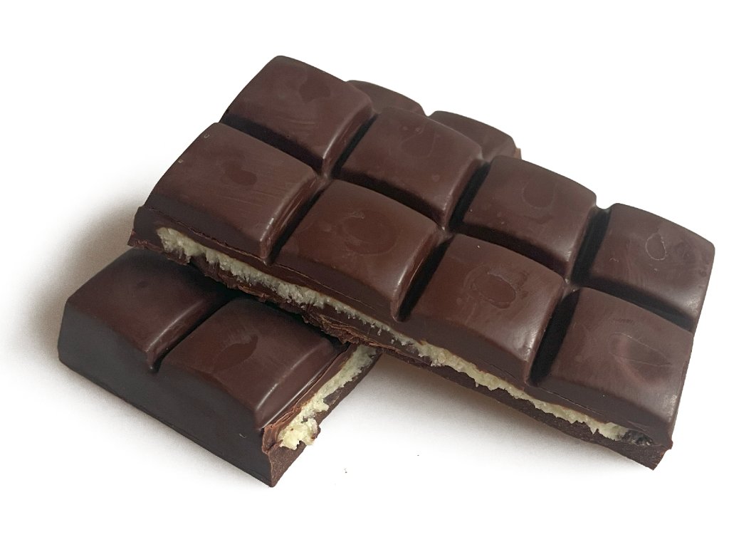 Jemná hořká čokoláda plněná krémovou bílou ganáží se strouhaným kokosem a navíc zdobená bílou čokoládou, díky čemuž vzniká atraktivní „strakatý“ efekt. Spojení jemné čokolády a kokosu vytváří lahodnou a vyváženou chuť, ideální pro všechny, kdo mají rádi čokoládu s jemně exotickým twistem.