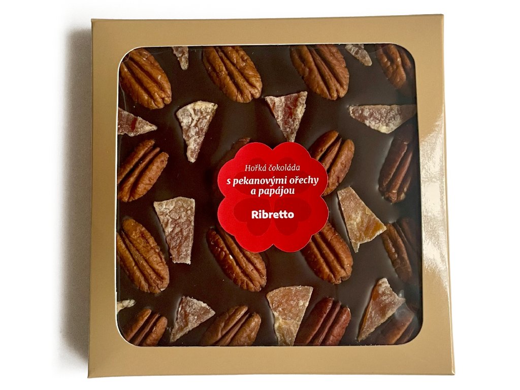 Čokoláda hořká s pekanovými ořechy a papájou 310g