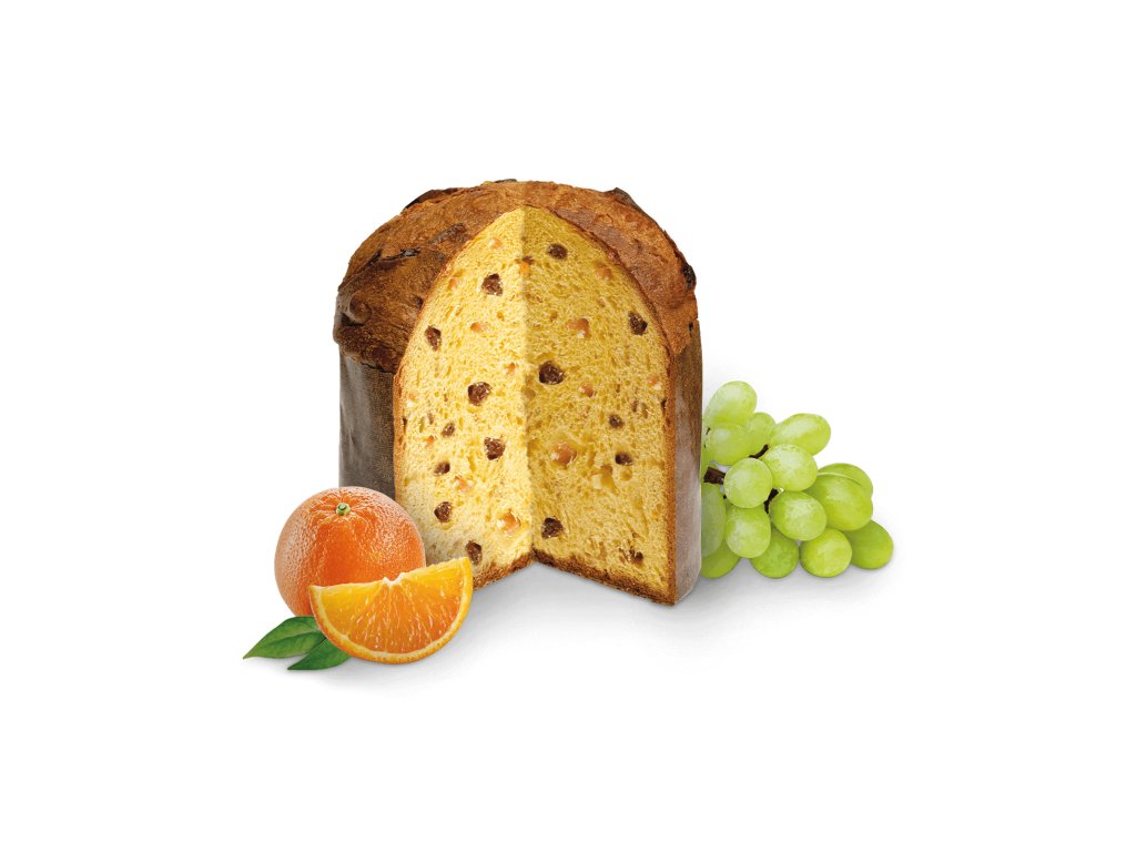 Složení: PŠENIČNÁ mouka, čerstvá VEJCE, rozinky sultánky 13 %, cukr, MÁSLO 9 %, kandovaná kůra z pomerančů ze Sicílie 9 % (pomerančová kůra 52 %, glukózo-fruktózový sirup, cukr, koncentrovaná citrónová šťáva), přírodní KVÁSEK, emulgátor: mono-a diglyceridy mastných kyselin rostlinného původu, čerstvý VAJEČNÝ žloutek, invertní cukr, jedlá sůl, přírodní aroma. Může obsahovat stopy sóji a skořápkových plodů.