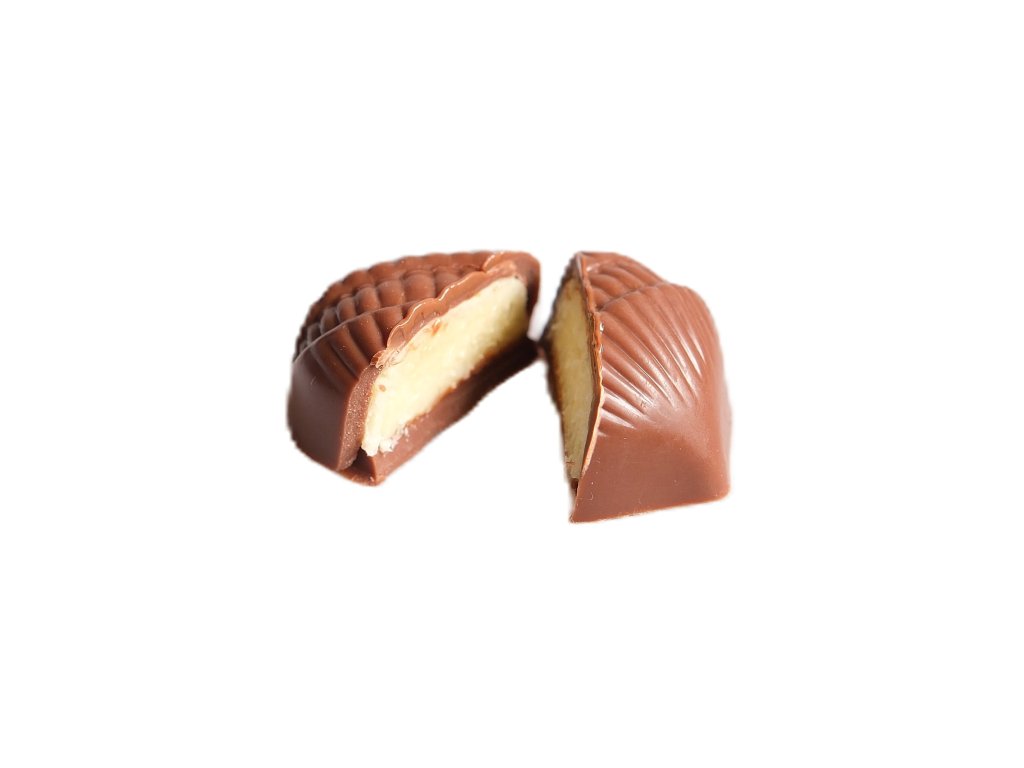 Pralinka ve tvaru mušle z mléčné čokolády ukrývá lahodnou kokosovou ganache z bílé čokolády, která dodává pralince exotickou svěžest a krémovou hebkost. Sladká harmonie čokolády a kokosu potěší všechny milovníky jemných a smetanových chutí.