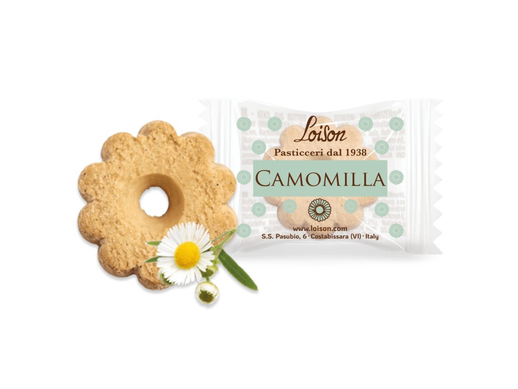 Camomilla: PŠENIČNÁ mouka, MÁSLO, cukr, čerstvá VEJCE z volného výběhu z Itálie, bramborový škrob, med z divokých květů ze Sicílie, prášek z heřmánku 1 %, přírodní pylový prášek, přírodní bourbon vanilka z Madagaskaru* 0,2 %, jedlá sůl, přírodní aroma.
