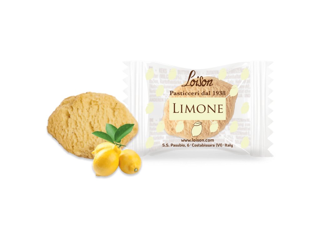Limone: PŠENIČNÁ mouka, MÁSLO, cukr, kandovaná a mletá kůra citrónů Siracusa PGI 14 % [citrónová kůra z citrónů Siracusa PGI 53 %, cukr, glukózo-fruktózový sirup], čerstvý VAJEČNÝ žloutek, čerstvá VEJCE, přírodní vanilka Mananara z Madagaskaru* 0,2 %, jedlá sůl, přírodní aroma.