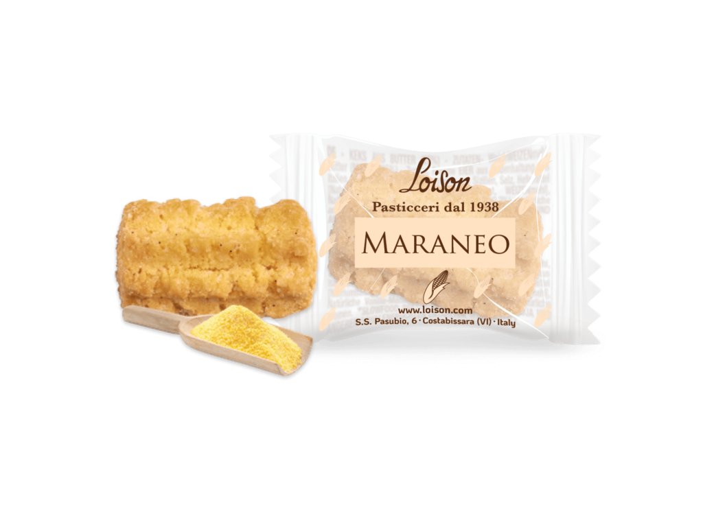 Maraneo: kukuřičná mouka „Marano“ 28 %, PŠENIČNÁ mouka, cukr, MÁSLO, čerstvý VAJEČNÝ žloutek, čerstvá VEJCE, jedlá sůl, přírodní bourbon vanilka z Madagaskaru* 0,2 %.