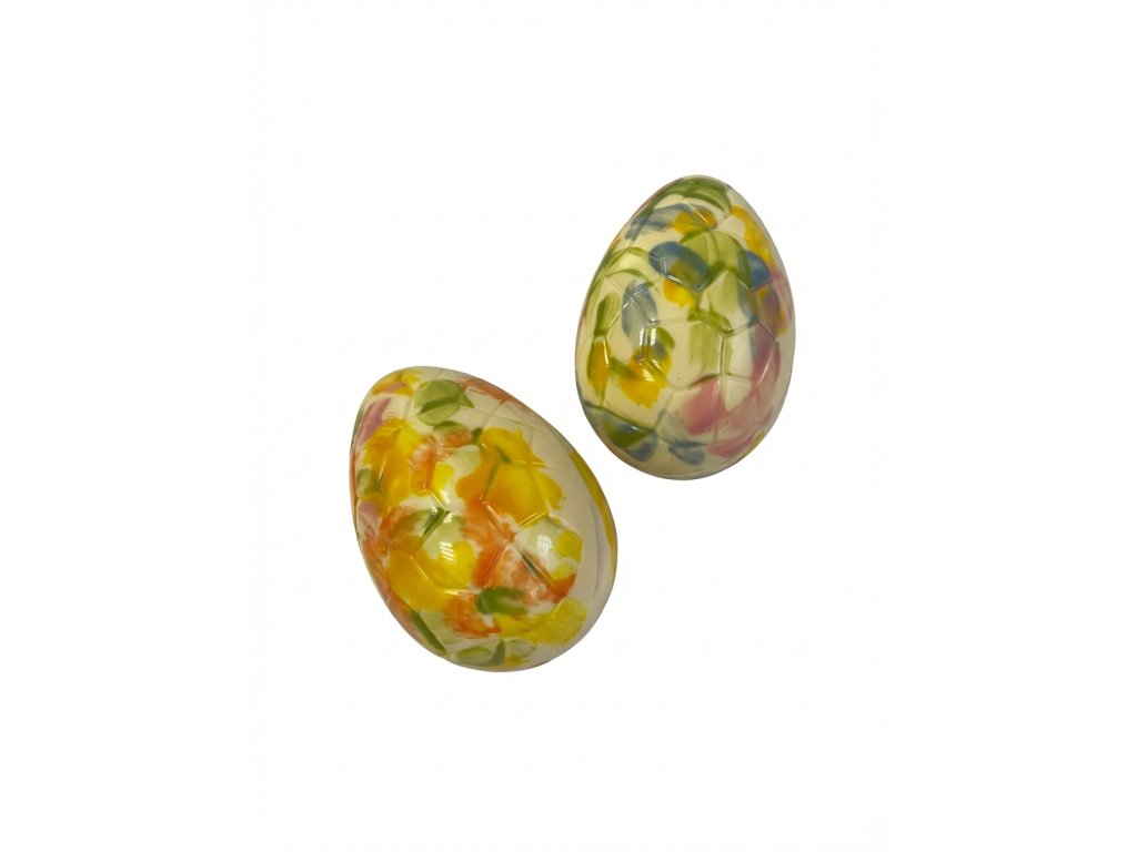Duté velikonoční vajíčko z jemné bílé čokolády je krásnou a originální ozdobou svátečních dní. Jeho povrch je ručně zdobený barevným kakaovým máslem, které vytváří hravé jarní motivy a dodává každému kusu jedinečný vzhled. Křehká skořápka z kvalitní bílé čokolády se na jazyku příjemně rozplývá a potěší všechny milovníky sladkých dobrot. Vajíčko se skvěle hodí jako elegantní velikonoční dárek, součást výslužky nebo stylová dekorace na slavnostní stůl. Každý kus je originál – stejně jako Velikonoce samy.